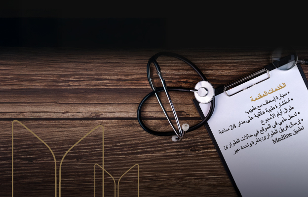 Medline حصريًا لعملاء الخدمات المصرفية الخاصة لدينا بالتعاون مع Medline يتم تقديم خدمة الطوارئ الصحية الاحترافية